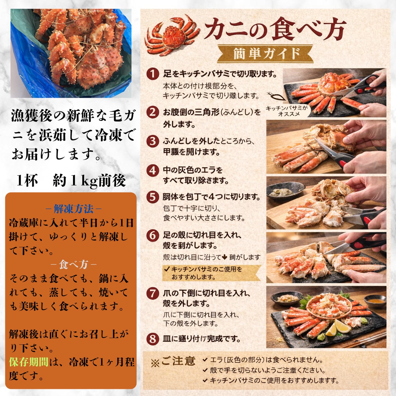 新鮮な北海道産の超特大毛ガニを、浜茹でで仕上げた贅沢な逸品をお届けします!